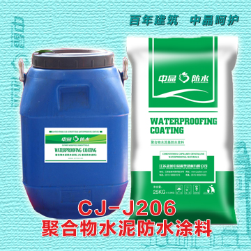"中晶"牌J206《JS柔韧型防水涂料》是我公司引进国外先进技术,采用优质聚丙烯酸酯乳液和多种无机材料及高档助剂、填料,通过合理配比,复合制成的一种双组份水性建筑防水涂料。它具有无机材料的耐久性和有机材料的高弹性的双重性能。是目前理想的新一代无毒绿色环保防水产品。执行标准:GB23445-2009《聚合物水泥防水材料》Ⅱ型。